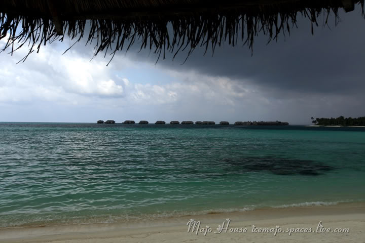 如果按照时间顺序的话,那么这篇是否应该是日出呢?实际的情况是,我不曾看到马尔代夫的日出。虽然每天清晨六点半左右,会因为很自然的听到微弱的海鸟叫声,微弱的浪花声音而清醒。赖床赖到7点半,到露台去看一看淡粉色的晨曦。 早上水上屋附近的海水最清澈,鱼儿都是成群成群的游过。