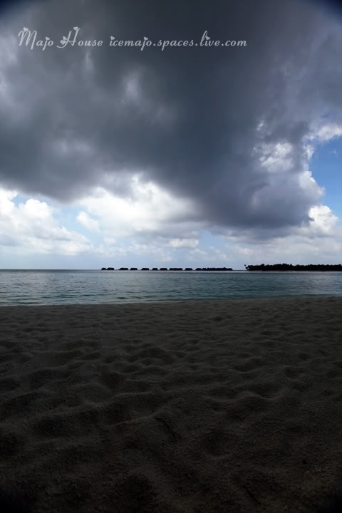 这一下雨,天变黑灰,海水变乌乌的,连本来还算白的沙滩,都被弄成了黄褐色,而且斑斑累累的一点也没有细腻的感觉了。