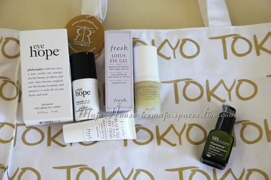 左一Philosophy Eye Hope (官网) 是他们家最有名的HOPE系列里面的眼睛最好卖的产品。主打黑眼圈和抗衰老。以前我曾经接触过Hope的面霜,虽然用起来感觉也滋润,不过一般我不是很哈欧美品牌所以并没有继续。后来听朋友说用了超级喜欢的,爱不释手,还续货,所以我也就打算再给它们一次机会。于是这次打折就补了眼霜,不过还没用,所以感受空瓶再说。