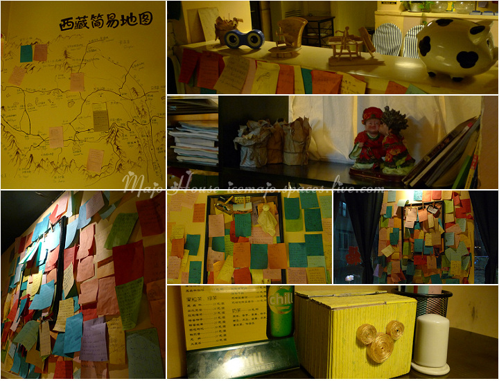 据说老板们是驴友,非常喜欢户外,某次出去玩有了这个主意就回来开了餐厅。 里面的东西很多都是他们从旅行路上带回来的,或者是自己废物利用DIY的。外间的墙上还有人家手绘的西藏地图,然后里里外外的隔间墙壁全部都是客人留下的话语。整个真的就好像是那种驴行路上的青年旅馆 feel 哦。 我很喜欢他们的slogan “一帮高谈阔论的驴友,两条果木炭香的烤鱼,三打焦香可口的烤串,N杯冰爽到底的扎啤,发生在黑森林里…