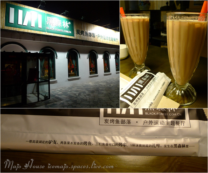 黑森林炭烤鱼部落 ( 海淀区双榆树西里4 号楼旁, 双安商场斜对面 ) http://www.dianping.com/shop/2779609  就在妹妹公司的附近,外表看起来很不起眼的,不过里面的装潢有点特别。 环境很温暖不拘束,会有很轻松的感觉。