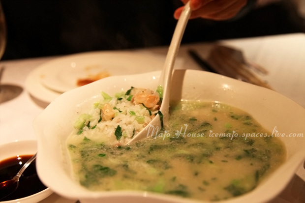 午餐真正在新天地里吃的一家好像是云南还是上海的菜,还不错。 点菜的时候我看到一个什么虾仁泡饭,觉得很有兴趣的,而且照片看起来也很实在。不过点完后,就想说,假如实物都是汤没有料的话那就悲剧了。