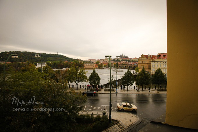 因为是只有一个卧室啦,所以当然是让给长辈去住啦。我就睡在客厅临时搭出来的折叠床上,不过我是一点点也都不在乎啦~ 因为只有那里才可以 抬头望城堡和查理,低头看伏尔塔瓦嘛。