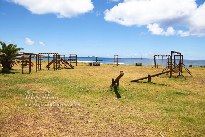 海边还有一些滑梯秋千,貌似是他们的小公园。这片草地上有时候还有野马在随意游走着,然后野马也都和人一样会自己过马路,他们全是随便的走,根本不把人当回事儿。