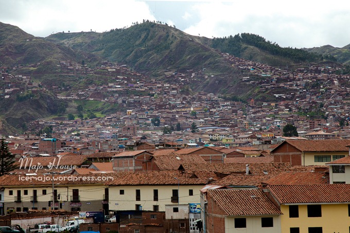 在终于抵达Cusco后,飞机下降时候看到的山城还是颇具特色的,暗黄色的Andes安第斯山脉附近Urubamba Valley(Sacred Valley)山坡上满满的砖红色房顶的矮房子。这里是Cusco的古城区,基本修建在山腰和山脚下。古城最初修建的时候被印加人修成了一只Cougar (Puma) 美洲豹的形状,毕竟印加人对这种拟形设计还是非常迷信的。他们经常把房子城市或者宫殿建造成神圣的动物形状,Cougar, Snake, 老鹰,豹爪,甚至是首领的头像。或许他们深信在这些形态的保护下,他们可以幸运又幸福,毕竟当初,这里是印加帝国繁荣的首都。