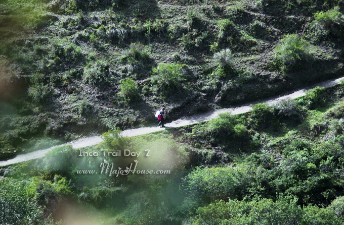 副徒导Guido在这附近赶上我,陪我走了好一段,一直到我说他可以先快走他才离去。和他一起走的那段,听他讲了他家住在Cusco,干这行已经三年了。貌似他说他年方27 (这里有些质疑我的记忆) ,已经成家并且有一个7个月的小女儿名叫Amelia. 他满脸灿烂笑容的说他女儿非常的可爱,还秀给我看在他手机里面的照片。我是真的没有想到啊,因为他看起来不大哦,本来我以为他也就22.