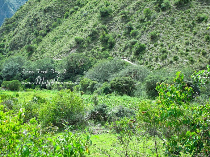 在 Wayllabamba 排队盖好了章以后,大家又开始赶路了。我因为之前的坡爬的有些喘,所以多休息了几分钟。出了一身的大汗,此时坐在这里吹风的感觉实在是太舒服了。