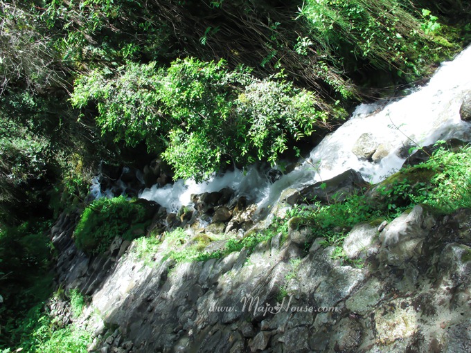 在这小丛林里面走,比较阴凉,有小树还有小桥流水。如果不是要赶路慢慢的在那里坐着还真的很不错。不过其实此时的我已经不能连续一直走一直走了,大约走十几步以后就觉得双腿无力,需要停下来休息。基本这段路也比较弯曲,所以我每一个转弯就休息一下。
