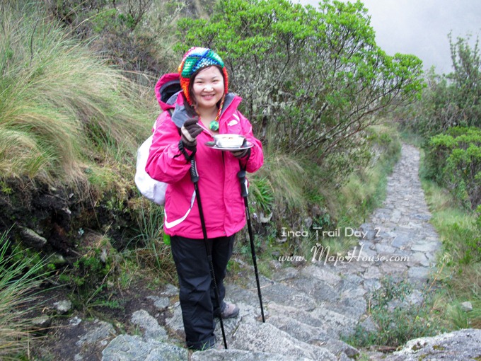 其实我一路上都是这么默默的在激励自己。没开始徒步的时候真的是不知道自己是否能够完成的,特别是第一天的时候还从波兰团友Lidia那里得知,真的还是有不少人中途退出的。她就听说前几天就有一对夫妇,已经爬了三天的,眼看就要大功告成,却在第三天完了以后决定抄小路下山,就算即日就能看到马丘比丘了他们也坚决决定退出。唉~ 那是得要多么的不能忍受,才能在都经历过最苦难的路程后已经看到彩虹的时候退出啊!!