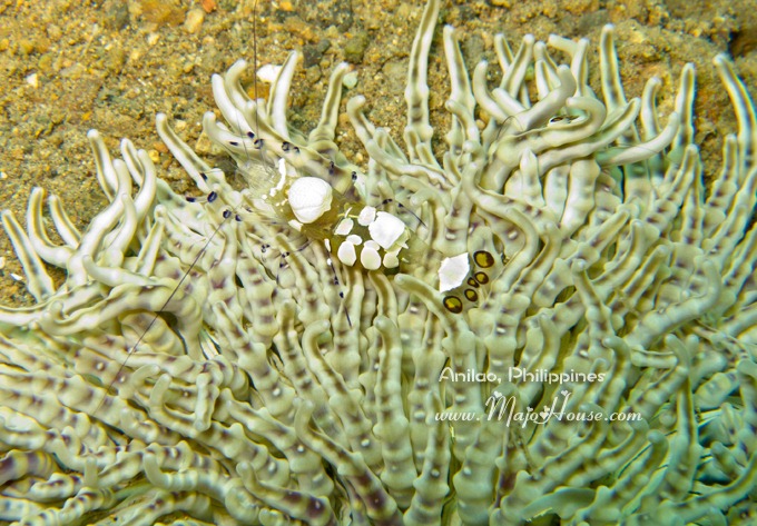 Anemone Shrimp,很晶莹透亮的。或许他们身体有些荧光色,所以其实在海葵上面还蛮容易发现的。