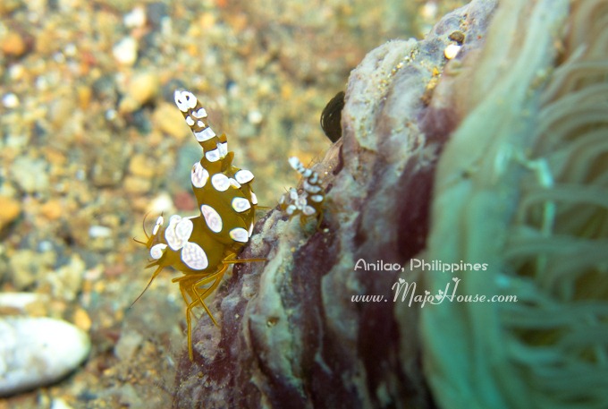 Squat Anemone Shrimp, 或者 Sexy Anemone shrimp. 叫做性感小虾的原因,是它们一直翘臀,还不停的左右摆动,呵呵。