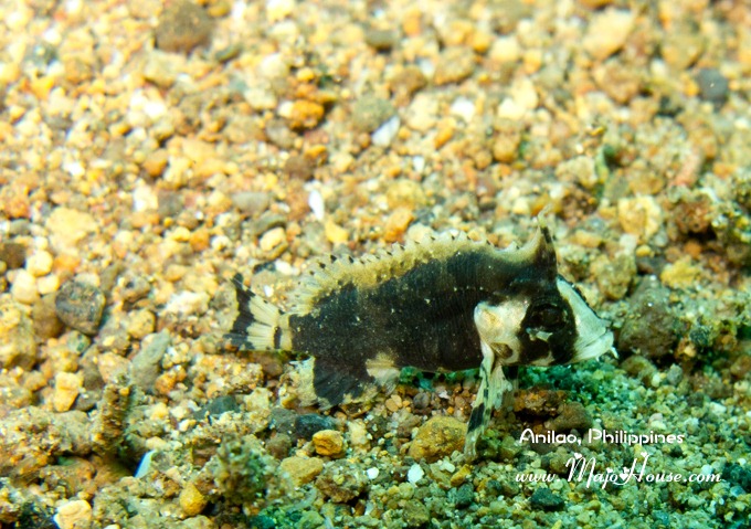 不好看的Waspfish, 现在想起来他们叫做济公鱼真的太贴切了。这两条在水里面就是顺着水流像两片枯叶一样左晃右荡的,而且头顶上还顶着一个三角形,完全就是喝醉酒的济公状啊!他们不是很好看,体积也不是迷你,DM指给我看得时候我完全没有兴趣拍照,也是因为微距镜头里面塞不下全部的他们,呵呵。 后来还是拍了只是因为我不知道这是啥,拍下回家学习。