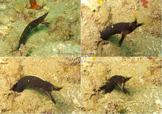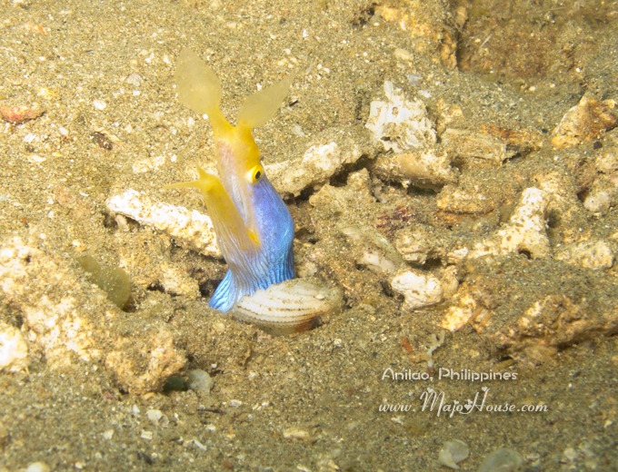 今天是7:20的时候我们就早早的出船了,第一个潜点过去还比较远呢,是叫做Talahib ,又是一片比较荒芜的泥沙地。东西蛮难找的,放眼望出去基本上什么都看不到的。还好今天这处没有太多蜇人的小水母。这边的水流还冷热融合,有的时候很温暖,有的时候冷冷的。肉眼也都能看到冷热融合起来的水状态(有点类似夏天里面看到空气中的热流那种,只不过是水流),就好像我第一次discover dive在 Tahiti 看到的那个水下温泉。