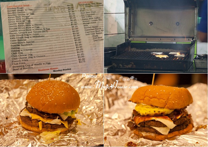 这一天呢,我们晚上去夜潜玩的不亦乐乎的。等上岸整理好装备,回到Hotel冲澡更衣后,已经九点了。这么晚了想着说外面还开门的地方一定不多了,于是就让出租司机直接拉我们去在Koror人人都知道的超有名汉堡店。
