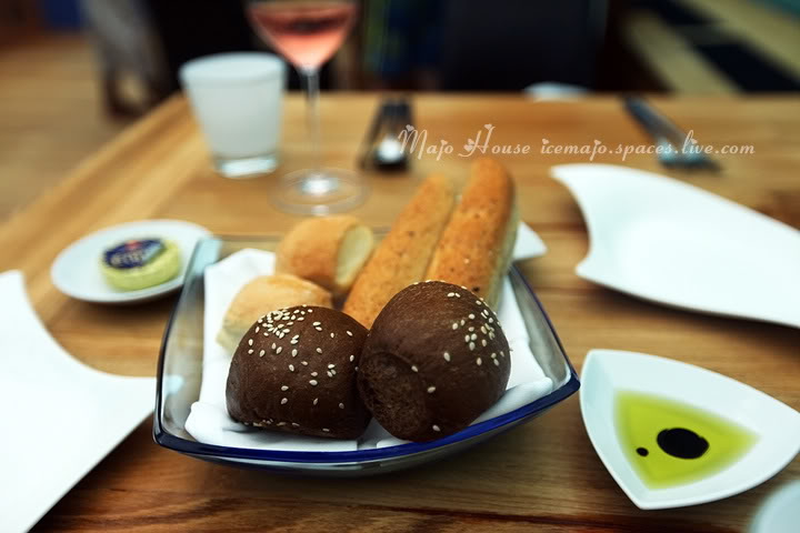 因为不饿,所以没有点很多东西,就是要了一份三文鱼,一份龙虾,还有一个时菜。餐厅的经理还有Waiter, 很热心的过来给我们介绍菜单,还说一定要上一份香槟才够情调的。哈~ 这个时候我们还没有给它去海下餐厅,所以不晓得酒水的贵重,也都没有问价钱就要了两杯。