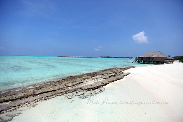 一边是水上屋的风景,门外沙滩另外一边就是这样的空旷白沙滩。