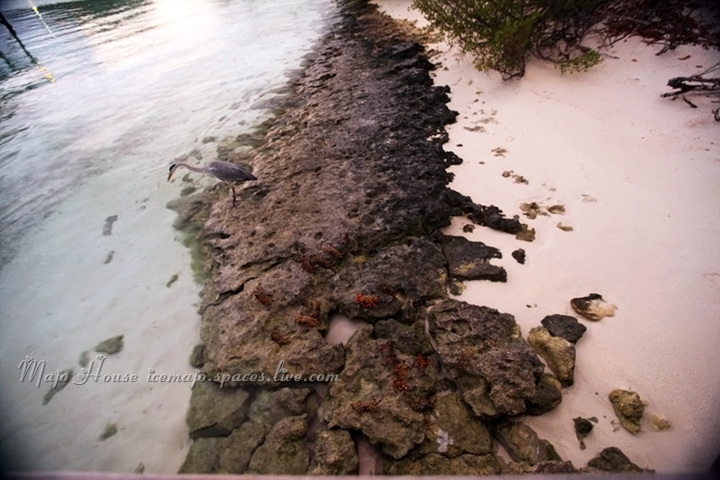 清晨起来,天空被晨曦照的有些粉红色。这个时候小岛后方的水最为清澈,你甚至可以看到一大群一大群的银色透明鱼儿从水底游过。