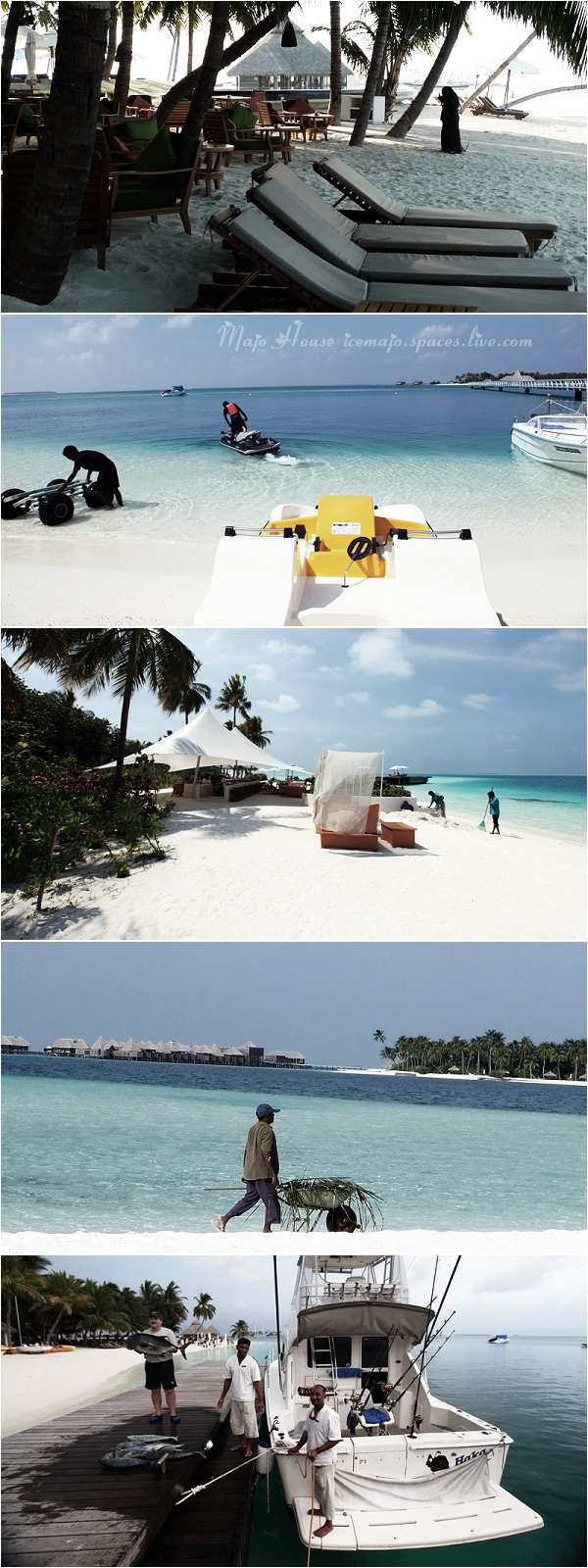 我不知道别的来岛上度假的人都是怎么想的,可是我自从在这边的第一个夜晚,就开始非常困扰于一件事情。那就是 “管家他们都住在哪里了呢” ?? 这边不比别的地方,下了班开了车还可以回家去睡觉的;这里你下了班也跑不掉,想要离开只能搭乘水上飞机,每趟还好几百米。估计大家赚钱的速度还比不过买机票的速度呢。 这里也都没有别的岛屿或者陆地那么有土地,可以盖房子宿舍给你住;真的就是那么巴掌的地盘,还基本都是度假村的房间和设施了。假若是淡季,可能还有那么些空房可以来睡吧;可是这几天是full house没有空位呢。再来就是根据我这些天来的观察,岛上的管家 服务生 清扫工人 各种各样的服务人员 绝对比客人要多得多。