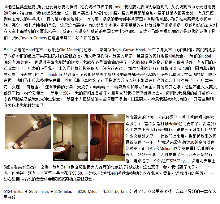 原计划是说和Beilie同步po我们的SE Asia Trip Journal的,不过看过她至今写出来的,我觉得我们一起的步伐很不一样。她写的简单明了,没有废话,只有重点;我写的长篇大论,恨不得芝麻大的事情都给描述描述的。按照这种推算,肯定她写完了,我才刚开始呢。