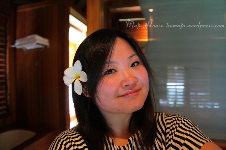 话说午后潜水初体验返回Hotel后, 冲洗 更衣 梳妆。发现这一个多小时的快艇暴晒,加上两个小时的海下摸鱼,已经让我的脸红了一大圈了,貌似还爆出来了一些晒斑。这边太阳真的很毒,气温也比较属于潮热,非常容易出汗呀。懒人我就不想化妆了,但是还是怕素颜,所以这次专门有准备秘密武器 假睫毛 数枚。 哇哈哈哈~ 脸上就上些防晒油,然后假睫毛带上,就比较有神啦。